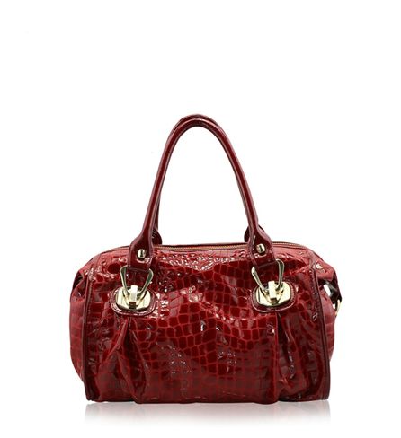 酒红色牛皮真皮手提包